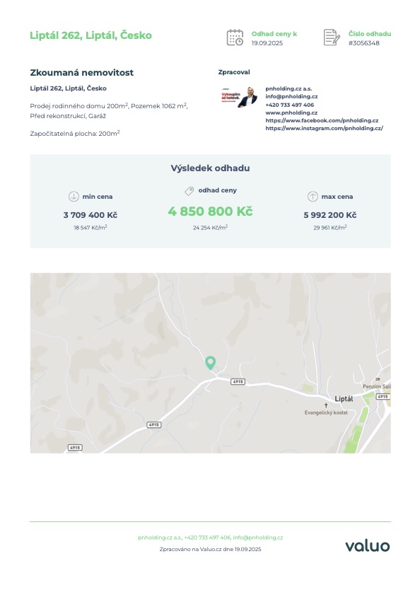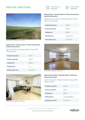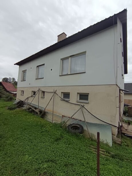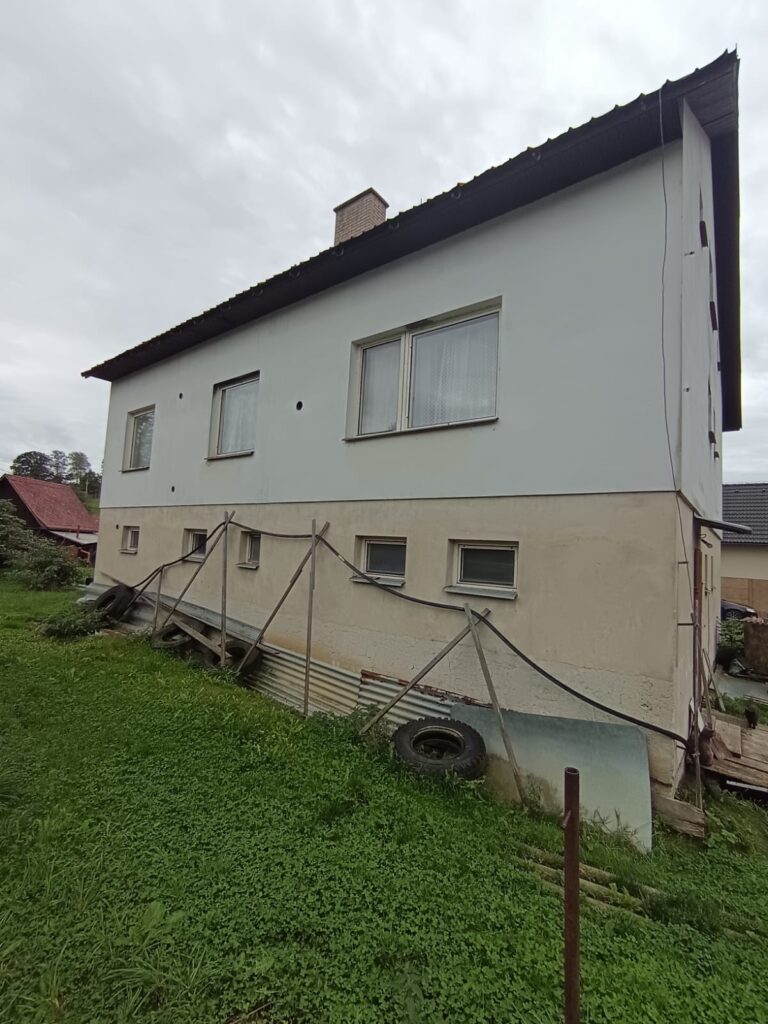 Nabízíme vám atraktivní příležitost ke krátkodobé investici do prostorného rodinného domu se třemi nadzemními podlažími a rozlehlým pozemkem o výměře přes 1 000 m². Dům má zastavěnou plochu přibližně 125 m² na každém patře. V přízemí se nachází technické zázemí se sociálním zařízením a garáží, v prvním patře obytná část s kuchyňským a hygienickým zázemím a podkroví je připraveno k využití dle potřeb nového majitele. Objekt je napojen na vodovod a elektrickou energii, vytápění je řešeno tuhými palivy, odpad je v současnosti sveden do jímky s možností napojení na kanalizační řád.